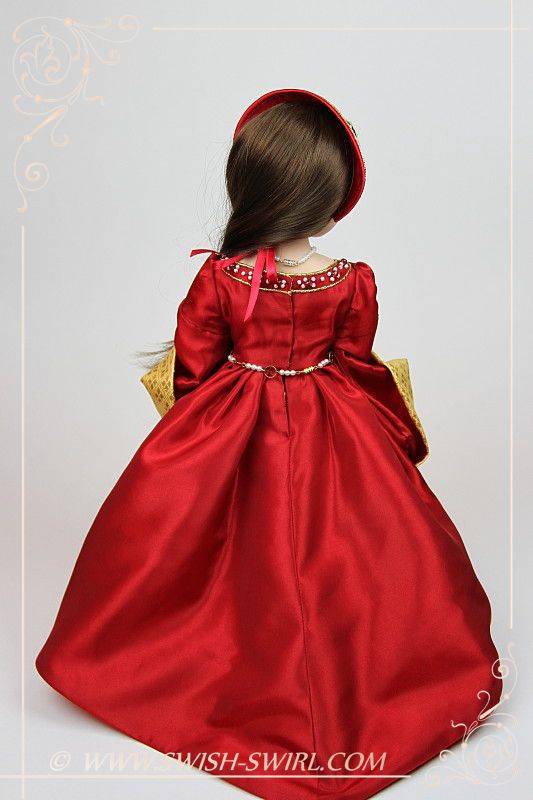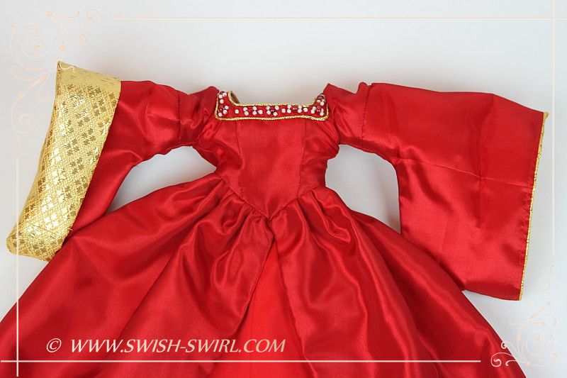 I have just purchased a Matilda «Girl for All times» doll for my daughter — I saw your beautiful red and gold gown and was wondering if you sold it or if I could buy a pattern?