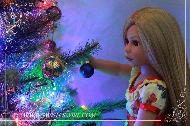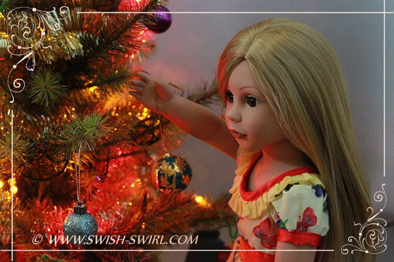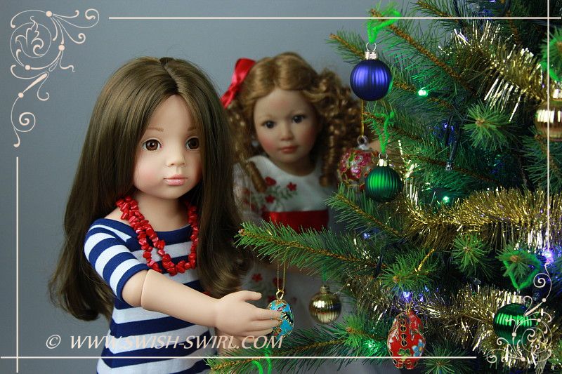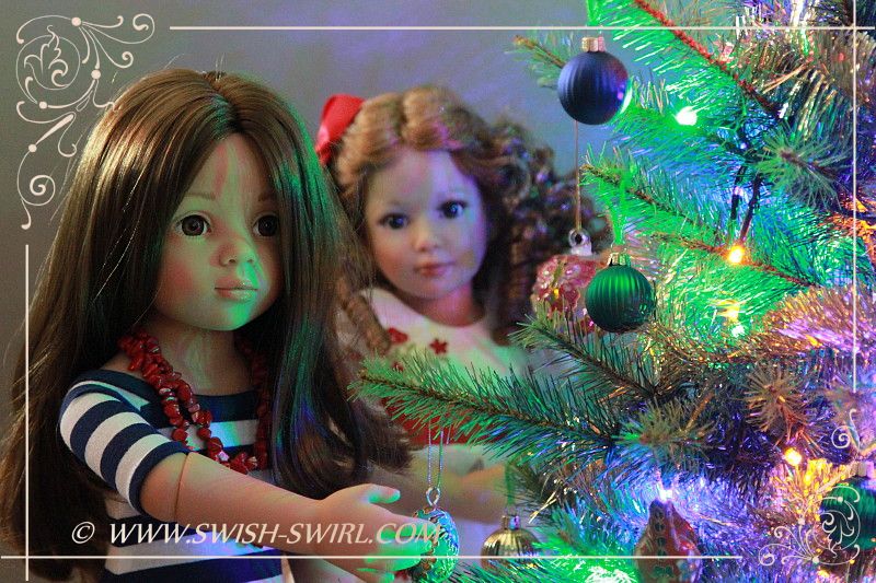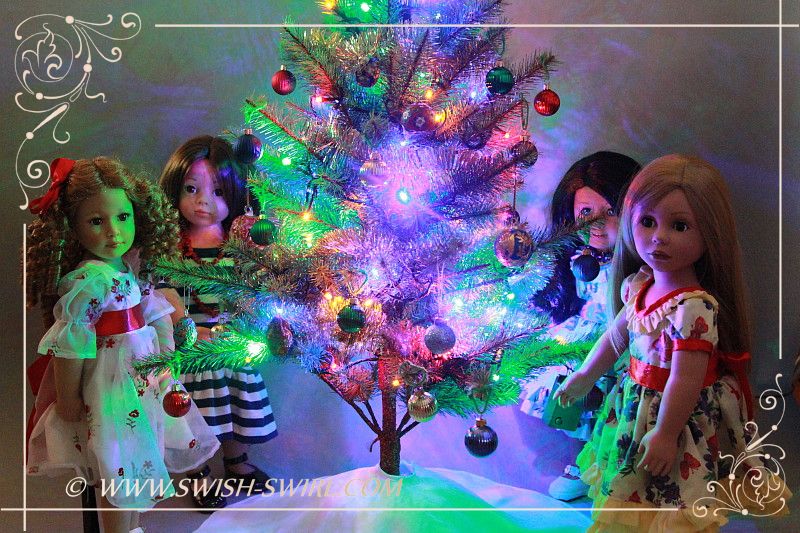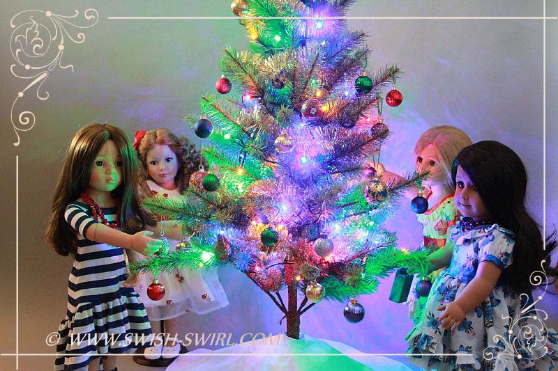 My four girls – Laura (Gotz doll Laura), Marianna (Kidz’n’Cats doll Tara), Catherine (MAG #49) and Florence (Bonnie & Pearl doll Olivia) – also decorated the Christmas tree, a very special one I got just for them!