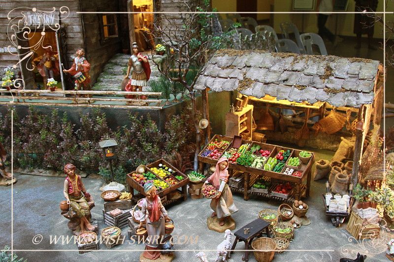 So, this is a Nativity scene which has been displayed at St Ignatius Church in Singapore during Advent and Christmas time for the past 3 years. It is quite large, measuring 6.7 m by 4 m (I would say, it is, probably, 1/6 scale) and the details are simply amazing. The scene was created by one of the parishioners, a businessman Mr Bernard Yeo who made it at home in his spare time. Mr Yeo handcrafted the Inn that was too full to take in Mary and Joseph, a market, a side house, a well, furniture, farm animals and a stream flowing through a miniature village. The figurines of the Holy Family and the Three Kings were provided by the church. Here is an article about this amazing project in the Singapore Catholic News.