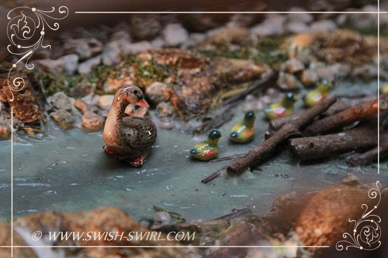 The stream got lots of ducks and ducklings and also a couple of turtles.