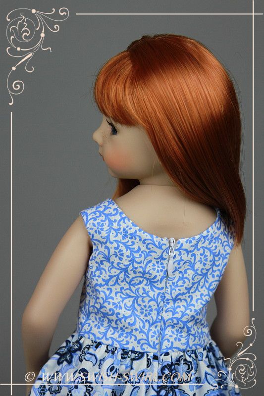 Полочка платья сшита, как обычно, с подкладкой из батиста. Платье застегивается сзади на молнию. Мне так нравится эта ткань, что в ближайшее время у меня будет еще пара платьев, сшитых из нее (правда, на других кукол).