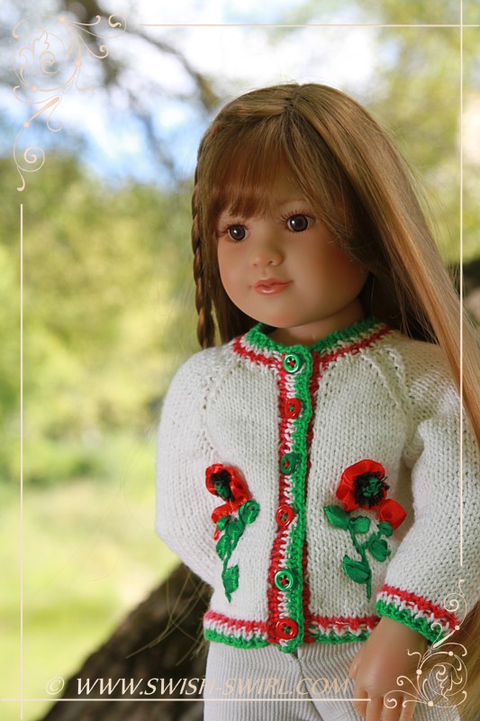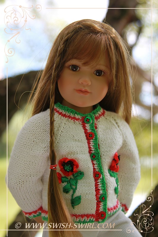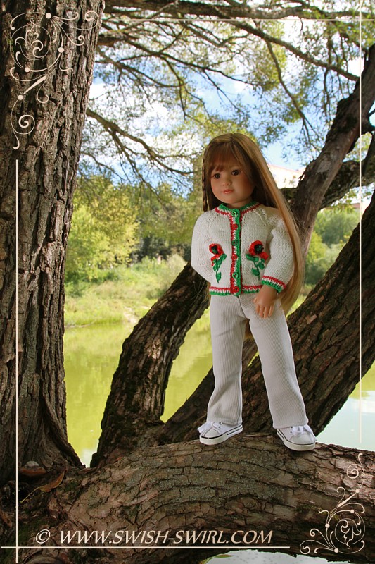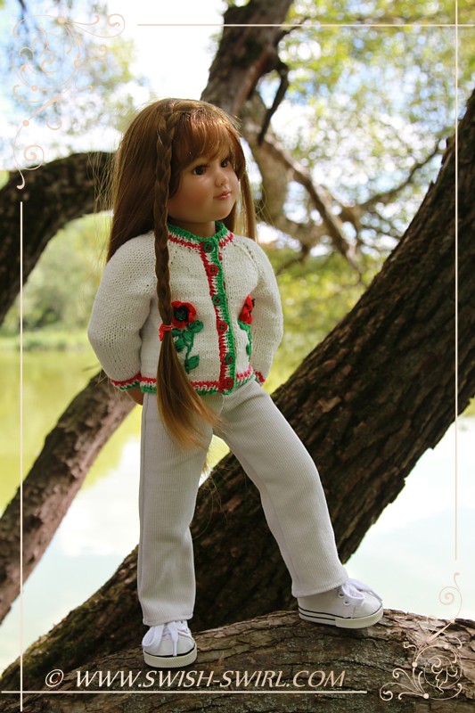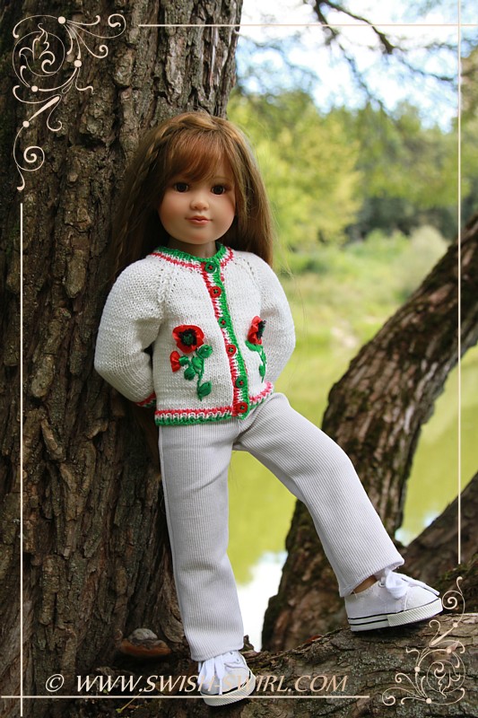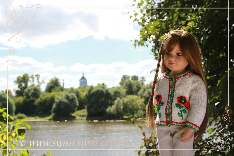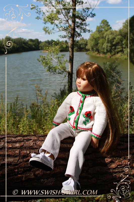 У Тинки появился новый кардиган, связанный для нее моей мамой. А также у нее и другая обновка — вельветовые брючки. И недавно она сходила на прогулку вокруг озера в моем родном городе. Она явно получила от прогулки большое удовольствие, вам не кажется?