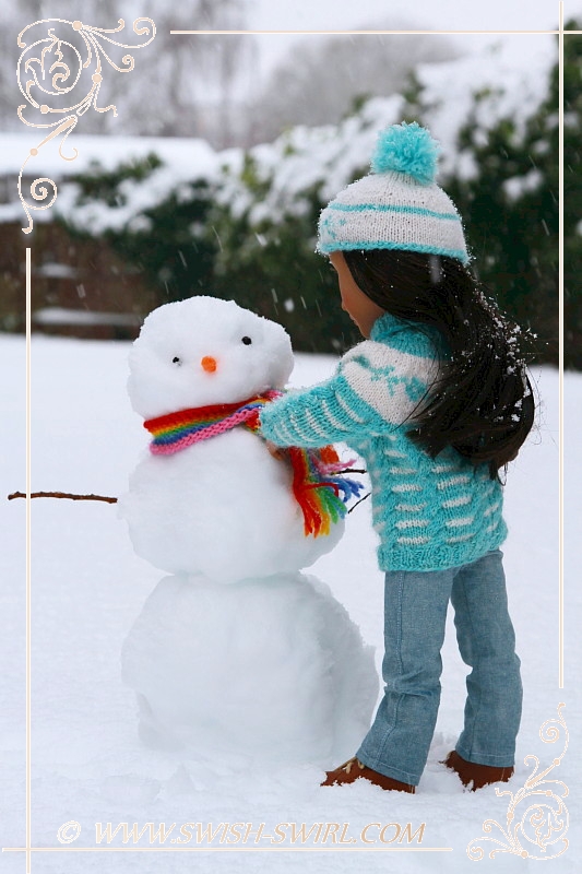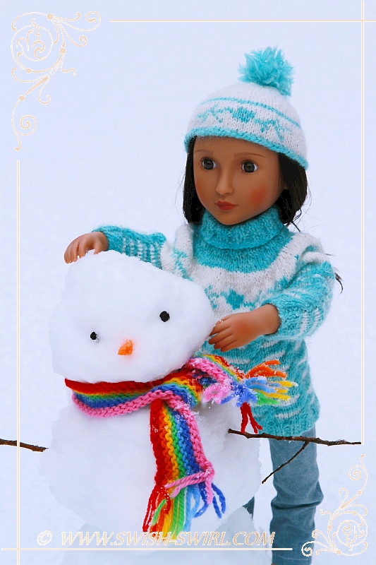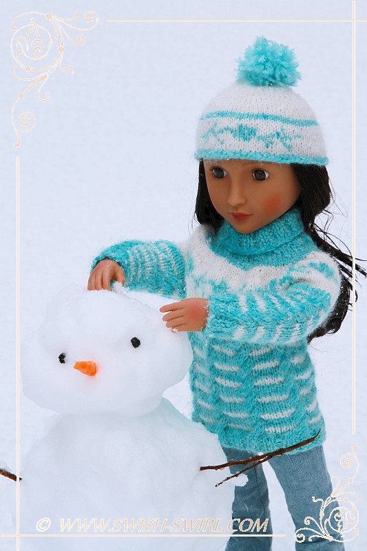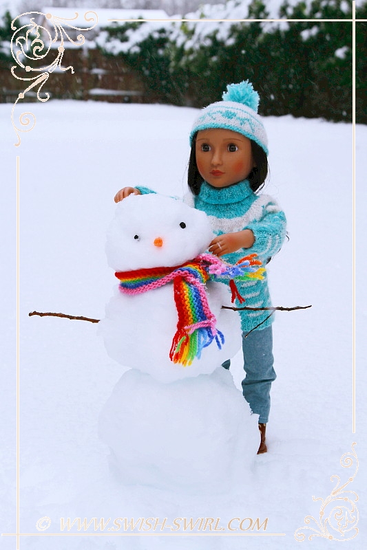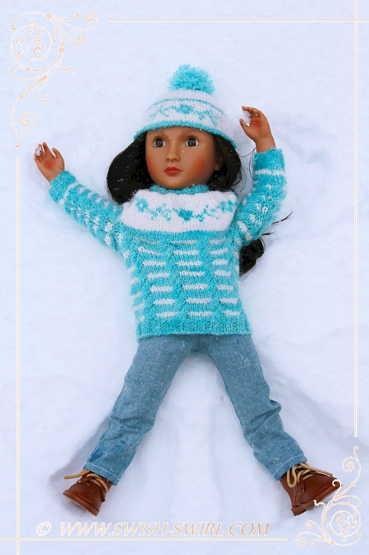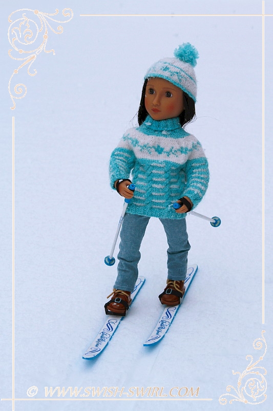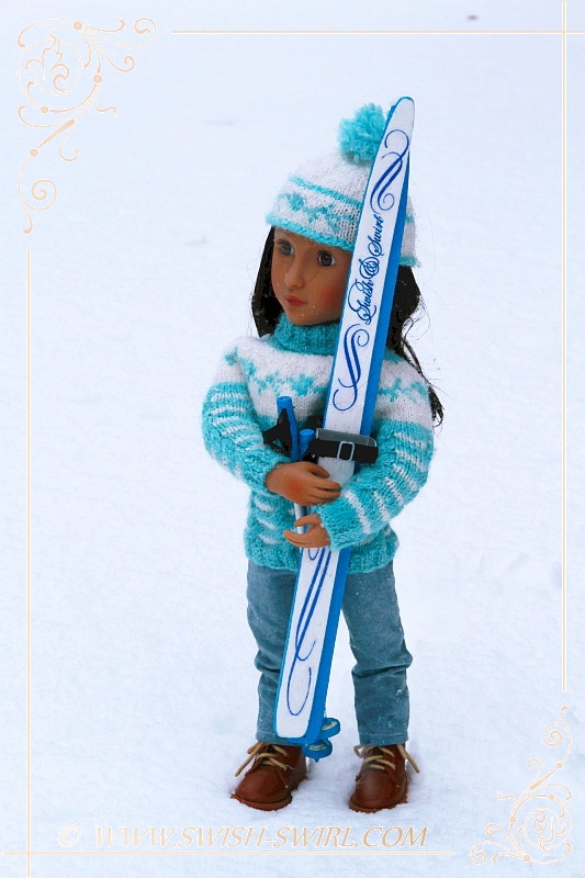 I used to love cross-country skiing as a child so I asked my parents if they could think of a way to make skis for my AGAT doll. And they did!! The skis are one-of-a-kind and feature Swish & Swirl logo on the skis and the poles. Aren’t they amazing? Nisha certainly thinks so!! She really enjoyed doing some cross-country skiing!