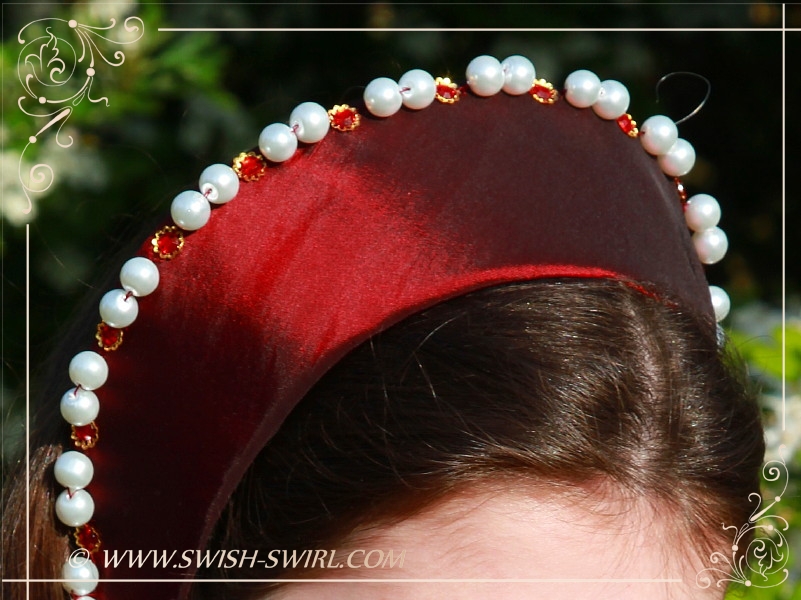 Я также сделала упрощенный вариант головного убора French hood. Моя дочь отказалась от настоящего аутентичного головного убора (ей он показался слишком громоздким), поэтому мы договорились на упрощенную его версию с резинкой сзади.