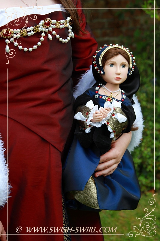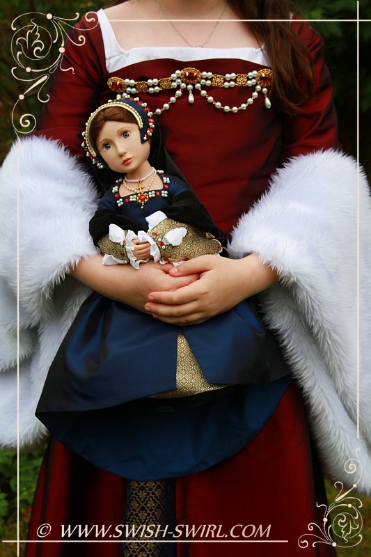 И, наконец, я сделала серию фотографий дочки с Матильдой, куклой A Girl for All Time, в полном тюдорском наряде. Если помните, я сшила этот наряд пару лет назад. Он является «платьем с обложки» одной из моих выкроек.